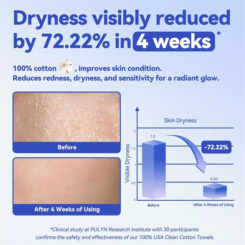 ผ้าเช็ดตัวที่นำกลับมาใช้ใหม่มักจะปิดกั้นแบคทีเรียนำไปสู่การอุดตันของรูขุมขนหรือการระคายเคืองผิวหนัง ผ้าขนหนูผ้าฝ้ายที่ใช้แล้วทิ้งหรือแห้งให้ประสบการณ์การดูแลผิวที่ปลอดภัยและสะอาดกว่า