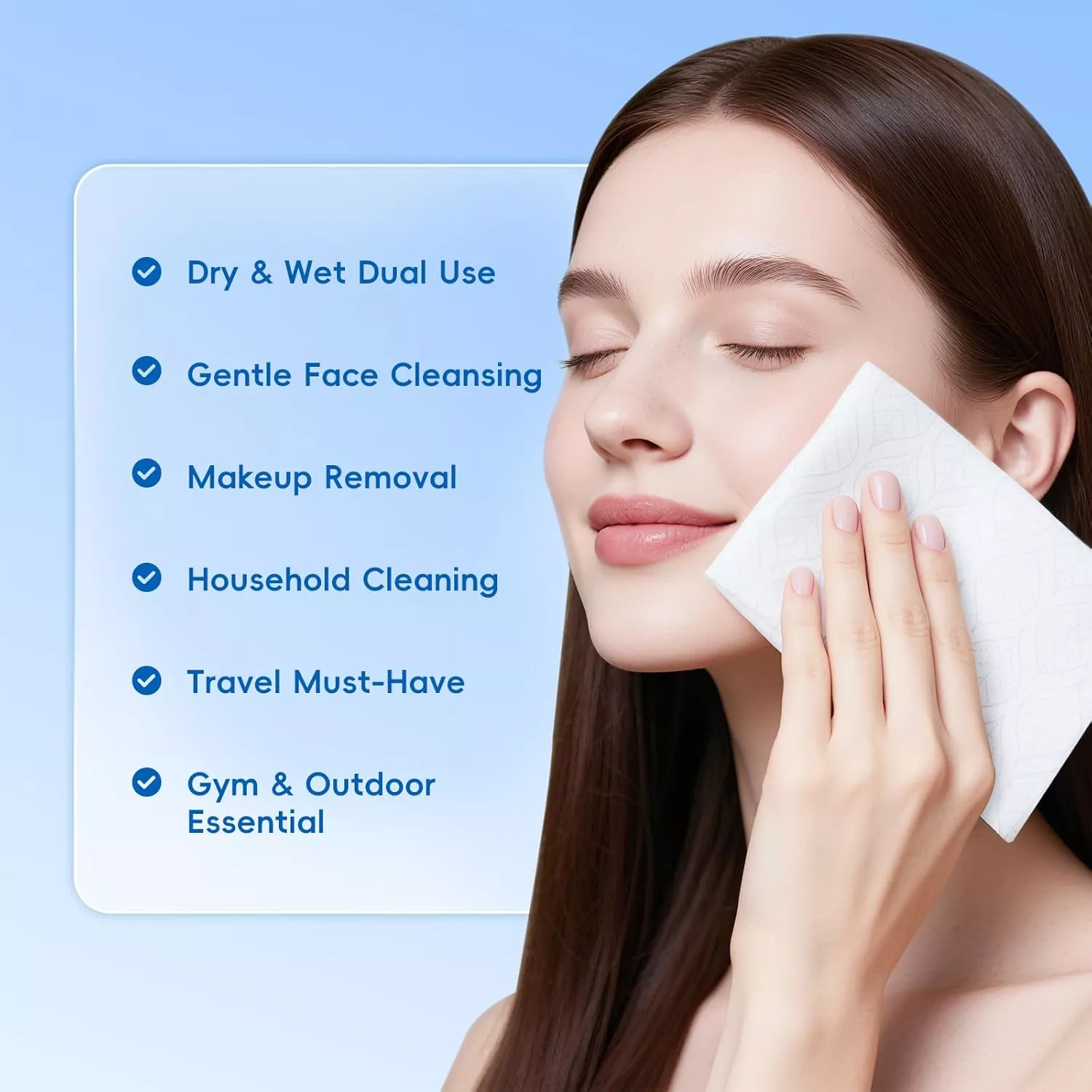 เส้นใยดูดซับน้ำโลชั่นหรือการทำความสะอาดของเหลวอย่างรวดเร็วทำให้เหมาะสำหรับการทำความสะอาดใบหน้าการกำจัดแต่งหน้าและการดูแลผิวประจำวัน